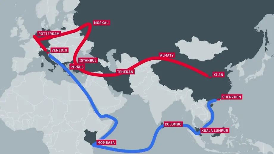 20.10.2023, 09:47 UhrDie Neue Seidenstraße soll China eine wirtschaftliche Vormacht in Asien, Afrika und Europa sichern. Auch der international weitgehend isolierte Wladimir Putin spielt dabei eine Rolle. ntv zeigt, wie das Mammut-Infrastrukturprojekt aussehen soll.