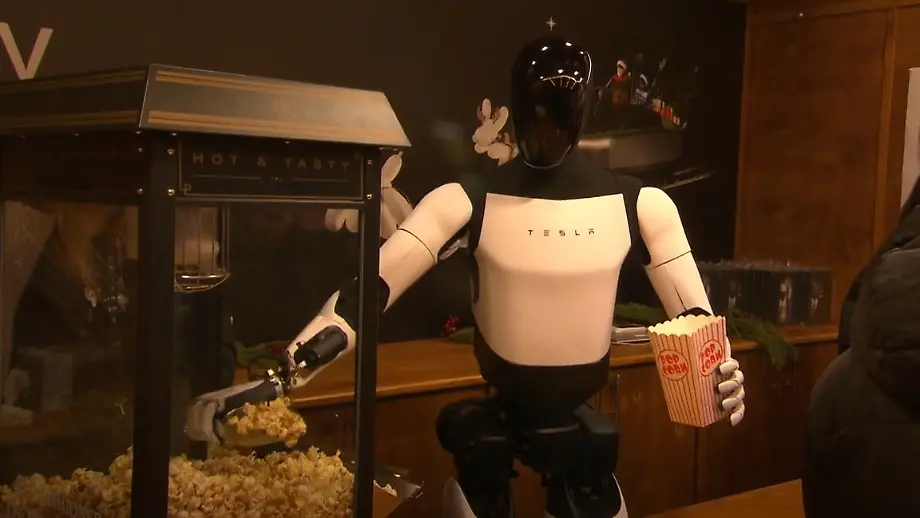20.12.2025, 16:52 UhrIn Berlin zieht Teslas humanoider Roboter staunende Blicke auf sich: Bei einer Präsentation auf einem Weihnachtsmarkt verteilt "Optimus" Popcorn an die Besucher und zeigt, wie weit die Technologie des Unternehmens inzwischen ist. Die Aktion lockt zahlreiche Menschen an, vor dem Stand bildet sich eine lange Schlange.