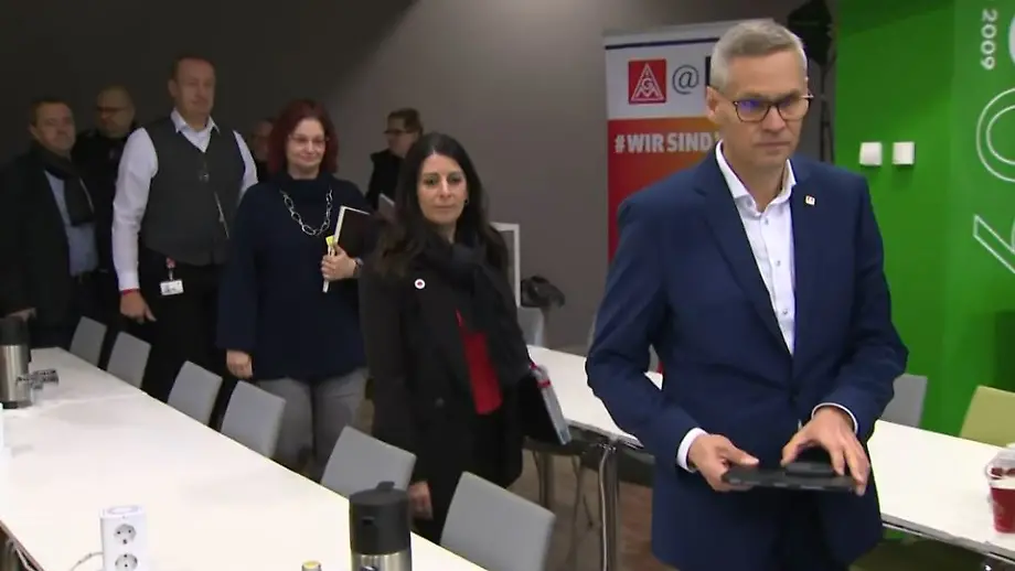21.11.2024, 20:01 UhrDer sofortige Durchbruch bleibt dem VW-Betriebsrat und der IG Metall bei der Verhandlungsrunde mit dem Konzern verwehrt. Im Raum stand unter anderem der Verzicht der Mitarbeiter auf höhere Gehälter. Nun könnte es ab Dezember zu Streiks kommen.