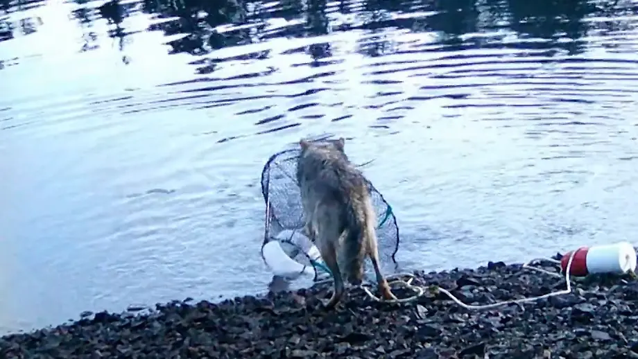 Fisch aus Falle geklautErstmals gefilmt: Wilde Wölfin nutzt Werkzeug