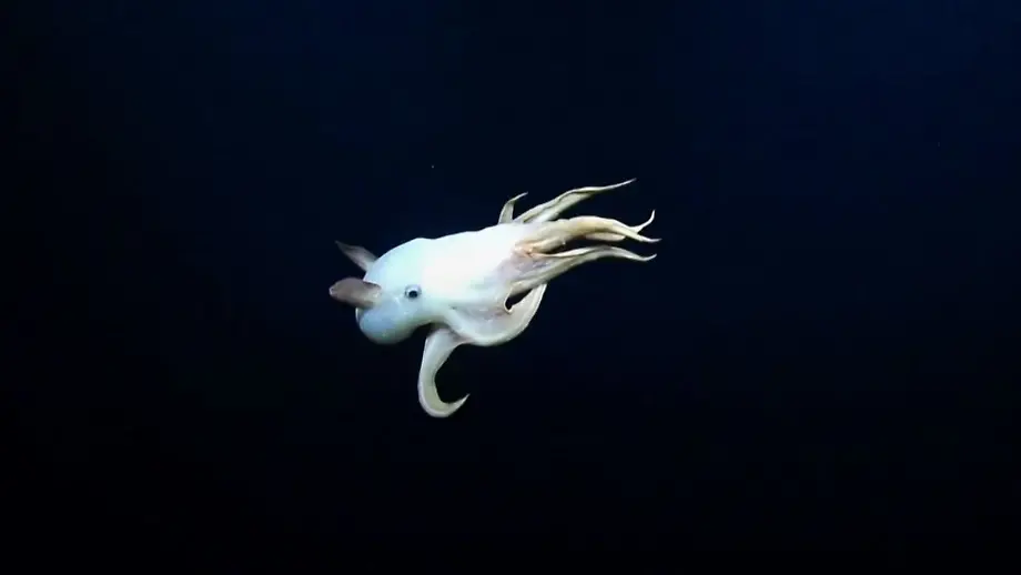 Tiefseetier mit Flossen am KopfForscher gelingen seltene Aufnahmen von Dumbo-Oktopus
