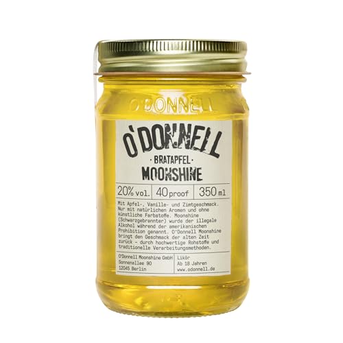 Ein toller Winterlikör: Der handwerklich hergestellte Bratapfel Likör "O'Donnell Moonshine" aus Berlin mit 20 Prozent Alkohol vereint den fruchtigen Geschmack von Apfel mit süßen Akzenten von Mandel, Vanille und Zimt. Der Geschmack wird mit einem Schuss Zitrone verfeinert. Stilecht wird der Schnaps in sogenannten Mason Jars abgefüllt, ähnlich wie es Gangster während der amerikanischen Prohibition taten. Unter Einhaltung alter Handwerks- und Brennregeln wird der Likör in Deutschland mit rein natürlichen Zutaten und einem Hauch von Whisky produziert.