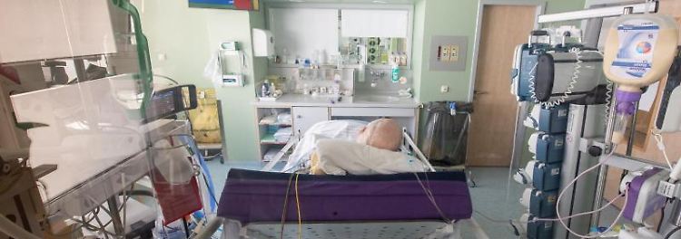 Ein Patient liegt in einem isoliertem Intensivbett-Zimmer. Foto: Peter Kneffel/dpa/Archivbild