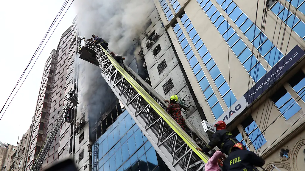 Aus einem mehrstöckigen Hochhaus in der Hauptstadt von Bangladesch schlagen Flammen und dichter Rauch. Zahlreiche Menschen sind vom Feuer eingeschlossen. Etliche versuchen verzweifelt, aus dem Gebäude zu gelangen. Einige springen.