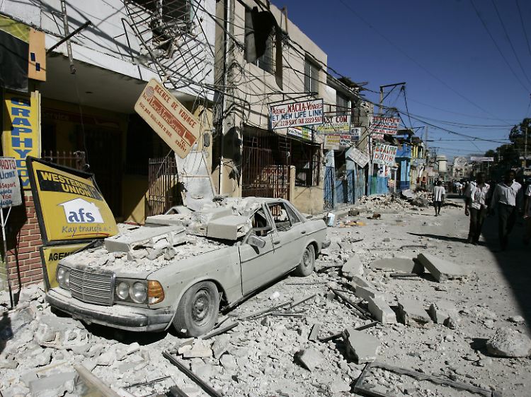Den Erdstößen der Stärke 7,0 folgen mehr als zehn Nachbeben. Das Epizentrum liegt etwa 16 Kilometer westlich von Port-au-Prince. Auch mehrere Deutsche sind unter den Toten. Schon vor der Katastrophe war Haiti bitterarm, etwa 80 Prozent der zehn Millionen Einwohner leben mit zwei US-Dollar täglich am Existenzminimum. Hunderttausende Bewohner der Hauptstadt verlieren alles. Überall liegen Leichen. "Dies ist das Ende der Welt", sagt Elmond Chere, ein Friedhofswärter im Januar. "Wir sind geliefert."