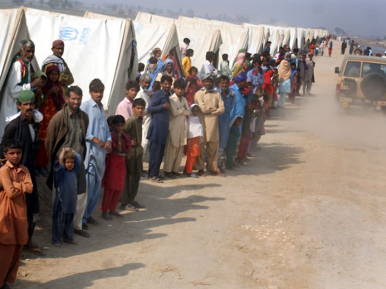 Auch das wochenlang von einer Jahrhundertflut heimgesuchte Pakistan ist ein schwaches Land - es kämpft mit einer strauchelnden Wirtschaft, Terrorattacken von Selbstmordattentätern und politischer Instabilität. Gut 20 Millionen Menschen leiden unter den Überschwemmungen, unter ihnen mehr als acht Millionen Kinder. Die verwüstete Fläche ist mit 160.000 Quadratkilometern fast halb so groß wie Deutschland, die Wassermassen zerstören etwa zwei Millionen Häuser und oftmals die Ernte. Viele Flutopfer werfen ihrer Regierung Versagen vor.