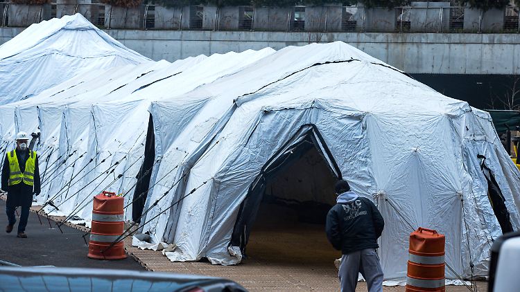 New York hat eine provisorische Leichenhalle errichtet. Die weißen Zelte wurden außerhalb des Bellevue Krankenhauses in Manhattan aufgebaut, wie Fotos in lokalen Medien zeigen. Die Internetseite "Politico" berichtet unter Berufung auf anonyme Quellen im Heimatschutzministerium, dass erwartet würde, dass die Leichenschauhäuser in der Ostküstenstadt nächste Woche an ihre Kapazitätsgrenze stoßen. New York hat in der Corona-Pandemie mit etwa 200 Toten nach Angaben der Johns-Hopkins-Universität mit Abstand die meisten US-Opfer. Landesweit lag die Zahl der Toten am Mittwochabend (Ortszeit) demnach bei rund 900.