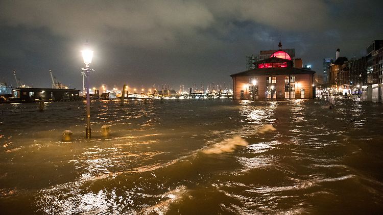 +++ 06:14 Sturmflut überschwemmt Hamburger Fischmarkt +++