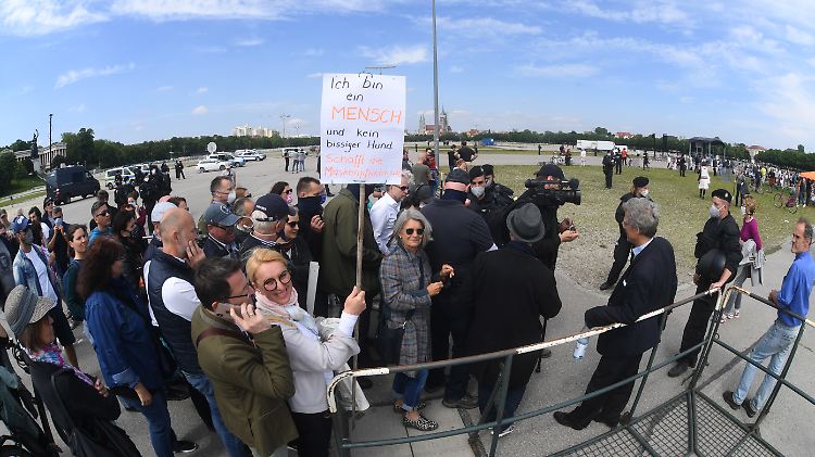 Bei einer Demonstration in München gegen die Corona-Politik ist die genehmigte Teilnehmerzahl von 1000 kurz vor Veranstaltungsbeginn erreicht worden. Die Polizei ließ am Nachmittag keine Menschen mehr auf das abgesperrte Gelände auf der Theresienwiese, auf der sonst im Herbst das Oktoberfest gefeiert wird. Gekommen waren weit mehr als die erlaubten 1000 Menschen. Nachdem das abgesperrte Gelände gefüllt war, schickte die Polizei die Wartenden von der Theresienwiese. Hunderte säumten daraufhin die Bürgersteige entlang der Fläche. Die Polizei begann später, Demonstranten jenseits des Demogeländes wegzutragen. Es blieb zunächst friedlich. Eine Rednerin kündigte an, "nächste Woche hier mit 10.000 Menschen stehen" zu wollen.