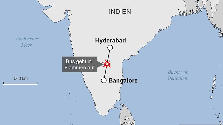 Bei einem schweren Busunglück sind in Südindien mindestens 44 Menschen ums Leben gekommen. Der Bus krachte auf der Autobahn zwischen den Städten Bangalore und Hyderabad gegen die Absperrung des Mittelstreifens. Laut der Polizei explodierte der Benzintank und das Fahrzeug ging in Flammen auf. Unter den Todesopfern waren den Angaben zufolge auch Kinder.