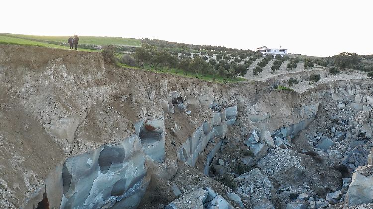 Eine Erdspalte zeigt in der türkischen Provinz Hatay, welch tektonische Kraft wirkte.