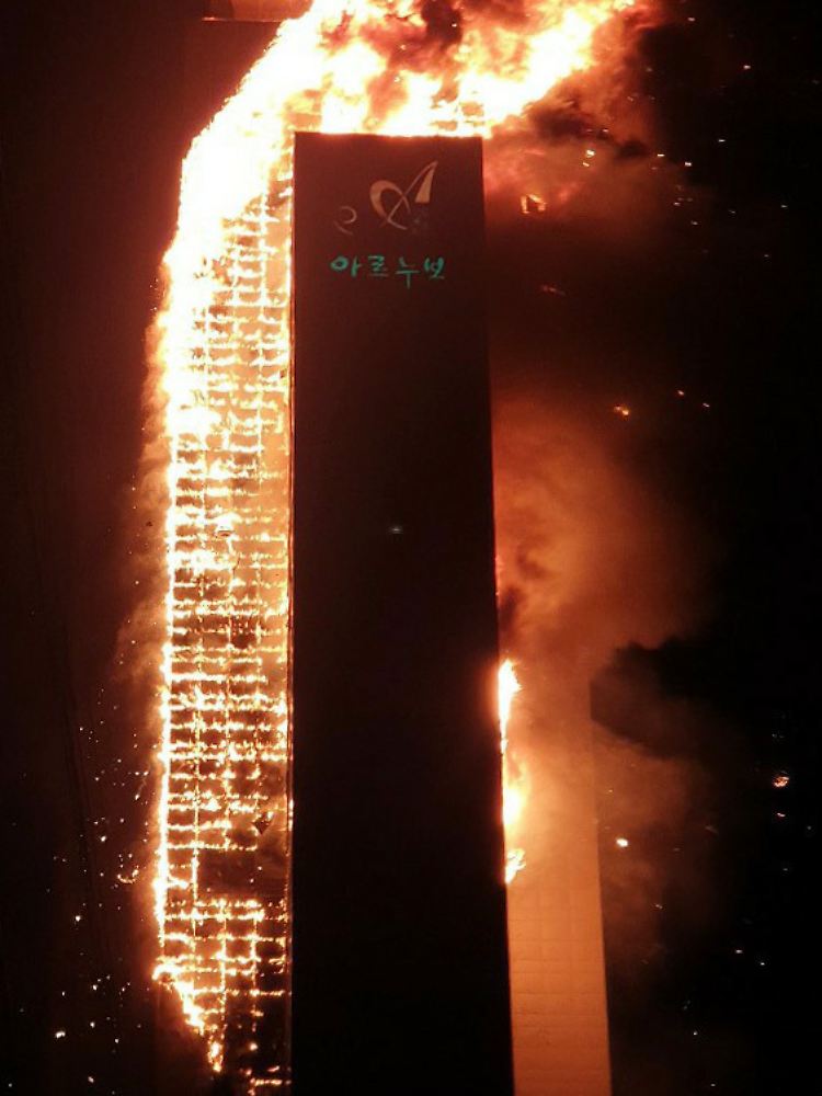 Es sind Bilder, die Bände sprechen: In der südkoreanischen Millionenstadt Ulsan bricht in einem Hochhaus ein Feuer aus. Es dauert nicht lange und eine Seite des Gebäudes steht komplett in Flammen.