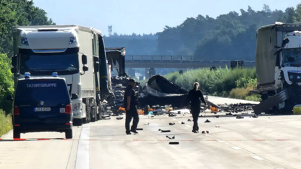 Nach einem Auffahrunfall mit mindestens zwei Toten auf der Autobahn 2 bleibt die Vollsperrung in Sachsen-Anhalt zwischen Theeßen und Burg bis voraussichtlich Mittwochabend bestehen. Wie die Autobahn GmbH mitteilte, bleibt die Fahrbahn in Richtung Hannover, wo der Unfall am Dienstagmittag geschah, voraussichtlich sogar bis Samstag gesperrt. Die Spur in Richtung Berlin, wo derzeit noch Trümmerteile liegen, könne voraussichtlich am Mittwochabend wieder freigegeben werden. Die Polizei empfiehlt dringend, das Unfallgebiet weiträumig zu umfahren. Auf den umliegenden Bundes- und Kreisstraßen bildeten sich lange Staus.