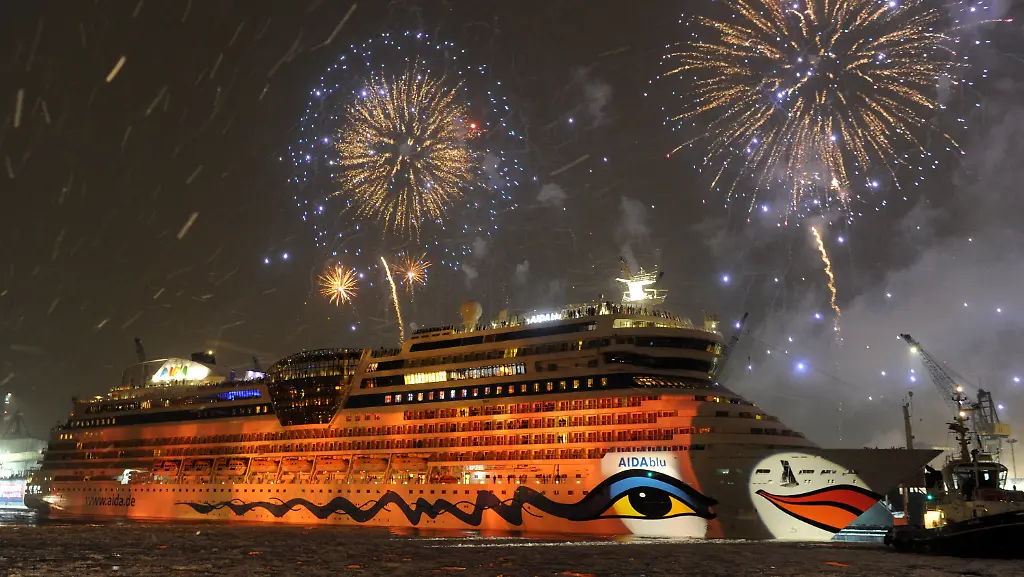 Mit einer Feier bei eisigen Temperaturen und einem leuchtenden Feuerwerk hat Taufpatin Jette Joop das Kreuzfahrtschiff "AIDAblu" auf seine Jungfernreise geschickt. "Trage das Lächeln in die Welt und in die Herzen der Menschen", sagte die Designerin am Dienstagabend im Schneetreiben vor der Hamburger Fischauktionshalle und zerschmetterte die traditionelle Champagnerflasche am Bug des 252 Meter langen Schiffes. Sie wünschte dem Schiff, seiner Crew und den Gästen "allzeit gute Fahrt und immer eine Handbreit Wasser unter den Kiel".