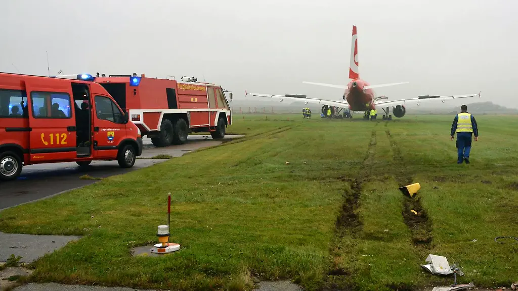 Eine Air-Berlin-Maschine schießt auf dem Flughafen der Insel Sylt rund 50 Meter über die Landebahn hinaus und bleibt im weichen Rasen stecken. Verletzt wird bei dem Vorfall niemand. Doch der Flughafen bleibt vorerst für den Flugverkehr gesperrt.