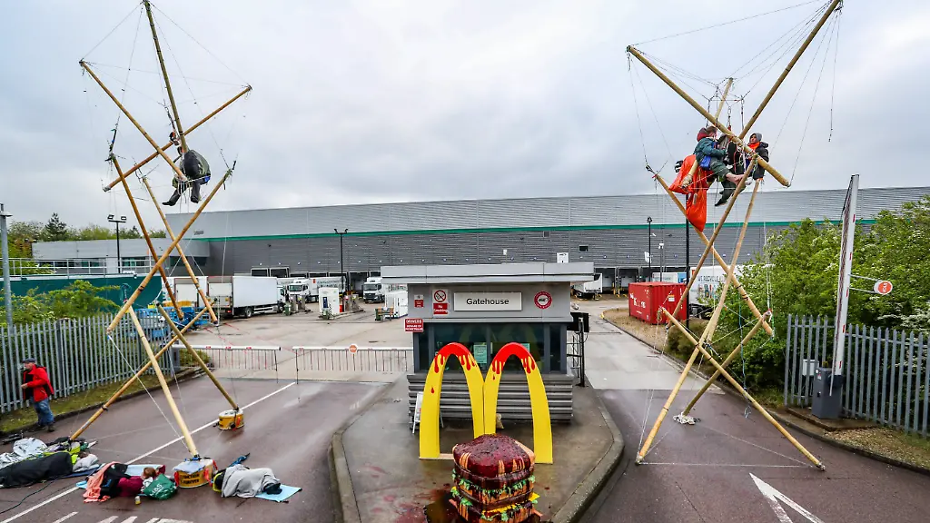 Tier- und Umweltschutzaktivisten haben in Großbritannien vier Verteilzentren der Fastfood-Kette McDonald's blockiert und eine Umstellung auf ein rein pflanzliches Angebot bis zum Jahr 2025 gefordert. Die Gruppe Animal Rebellion erklärte, sie wolle die Verteilzentren in Hemel Hampstead nahe London, Basingstoke in Südengland, Coventry und Greater Manchester für mindestens 24 Stunden blockieren. Davon seien 1300 Restaurants in Großbritannien betroffen.