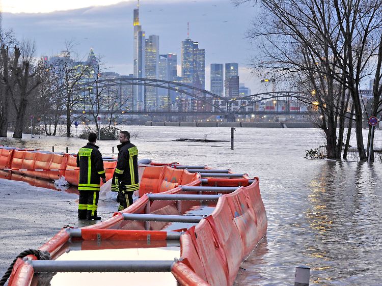 In Frankfurt blieb das Main-Hochwasser indes unter der Fünf-Meter-Marke. Die Hochwasserwelle passierte die Stadt in der Nacht ohne gravierende Folgen. Das Wasser stand am Dienstagabend mit 4,84 Metern am höchsten, wie ein Feuerwehrsprecher sagte. Gegen 1.00 Uhr waren es bereits drei Zentimeter weniger. Die künstlichen Dämme an der Altstadt hätten dem Wasser standgehalten. "Wir haben keinerlei Einsätze wegen des Hochwassers", erklärte der Sprecher. Es würden lediglich die Schutzmaßnahmen kontrolliert. Mit weiteren Problemen oder steigenden Pegelständen rechnete er zunächst nicht. "Das dürfte es erst mal gewesen sein."