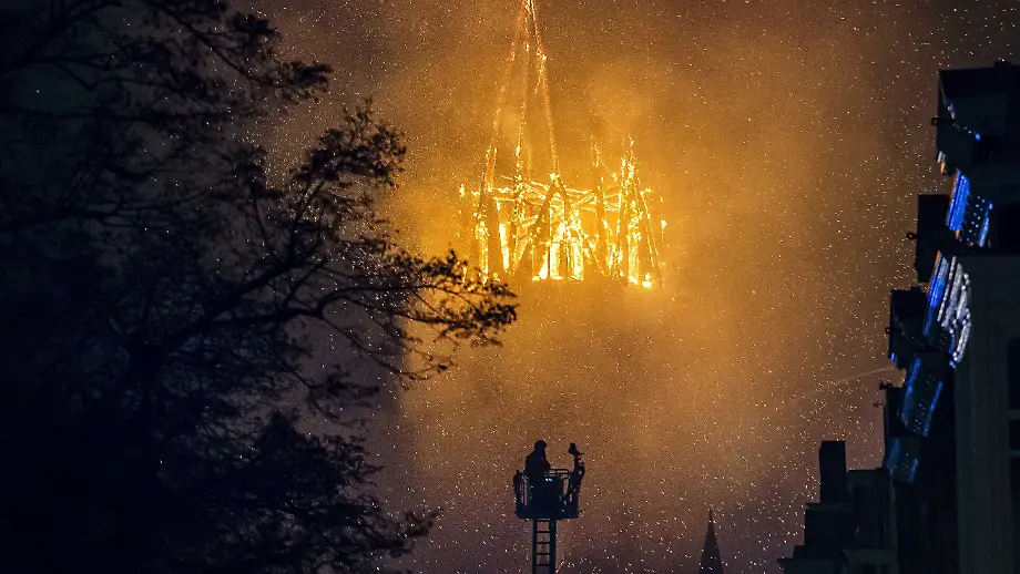 50 Meter hoher Turm stürzt einAmsterdamer Kirche steht in Silvesternacht in Flammen