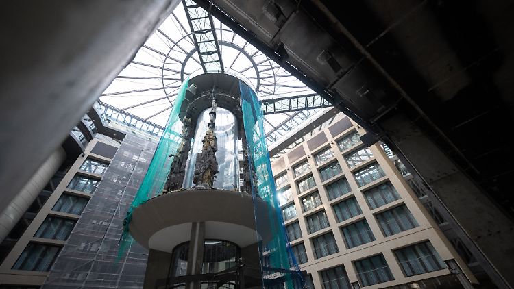 Etwa eine Million Liter Wasser ergossen sich vor einem Jahr in ein Hotel und die umliegenden Straßen in der Berliner Innenstadt. Für viele war es ein Schock, als das 16 Meter hohe Riesenaquarium am 16. Dezember 2022 in Hunderte Bruchstücke zerbrach und Tausende Fische starben. Zwei Menschen wurden leicht verletzt, zahlreiche Läden in dem Gebäudekomplex durch die Wassermassen beschädigt.