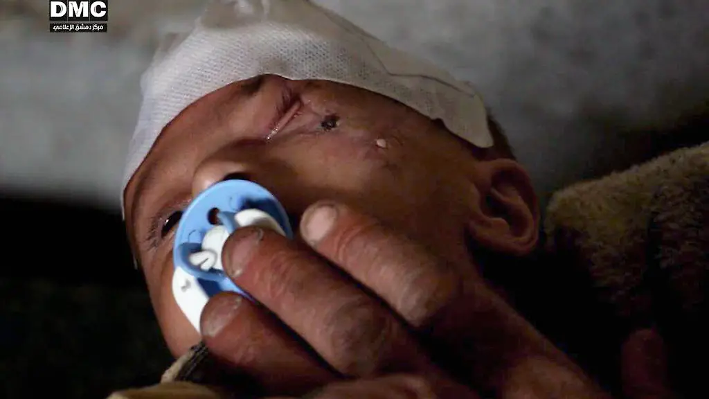 Ein wenige Wochen altes und bereits verstümmeltes Baby aus der belagerten syrischen Region Ghouta ist Gesicht einer Twitter-Kampagne, die mehr Aufmerksamkeit für das Leid der Zivilbevölkerung dort erreichen soll. Der Junge heißt Karim und verlor beim Beschuss eines Marktes im Ort seine Mutter. Er selbst wurde schwer verletzt: Splitter bohrten sich in sein Auge und verletzten seinen Schädel.