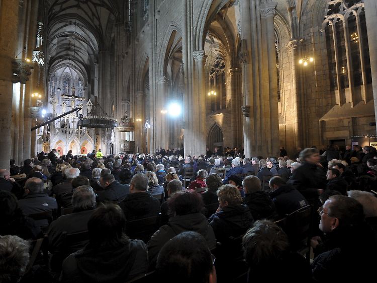 Zu der Trauerfeier im Dom zu Halberstadt waren Angehörige der Opfer, Helfer, Vertreter von Bundes- und Landesregierung, des Landtags von Sachsen-Anhalt sowie der evangelischen und der katholischem Kirche gekommen.