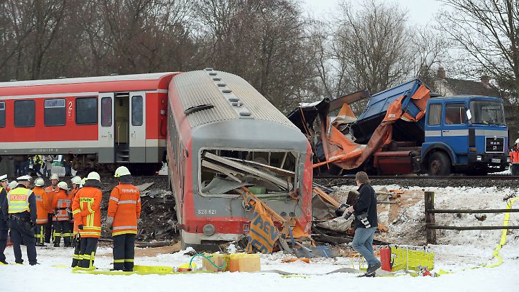 Ein Lastwagenfahrer hat eine verbotene Abkürzung über eine Bahnstrecke gewählt und damit in Braunschweig ein Unglück mit 16 Verletzten ausgelöst. Ein Regionalzug stieß bei Rüningen (Niedersachsen) mit dem Getreide-Lastwagen zusammen, der über die Gleise gefahren war, weil die Zufahrt zu einer nahen Mühle noch versperrt war. Der vordere Waggon des zweiteiligen Dieseltriebwagens entgleiste und landete auf einem Feld.