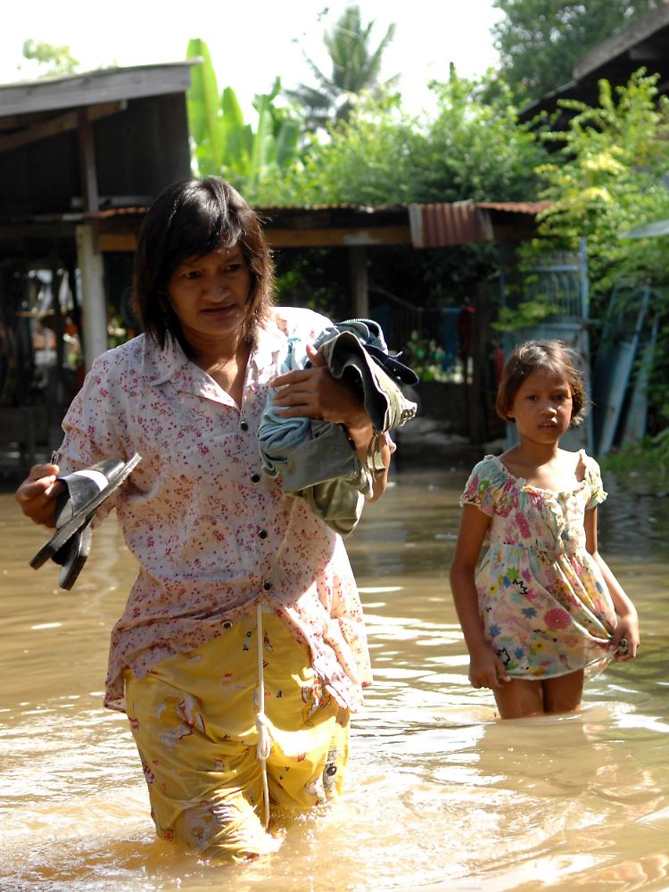 Die Flutwelle schwappt nach den schweren Monsunregen im Nordosten und Zentralthailand nach Bangkok. Ein Drittel der 77 Provinzen steht teilweise unter Wasser. Mindestens 32 Menschen ertranken in den vergangenen Tagen. Weil der Druck an einigen Staumauern zu groß war, mussten am Chao Phraya nördlich von Bangkok mehrere Schleusen geöffnet werden. Bangkok war 1986 und 1995 schwer überflutet worden. Seitdem sind die Schutzmaßnahmen verbessert worden.
