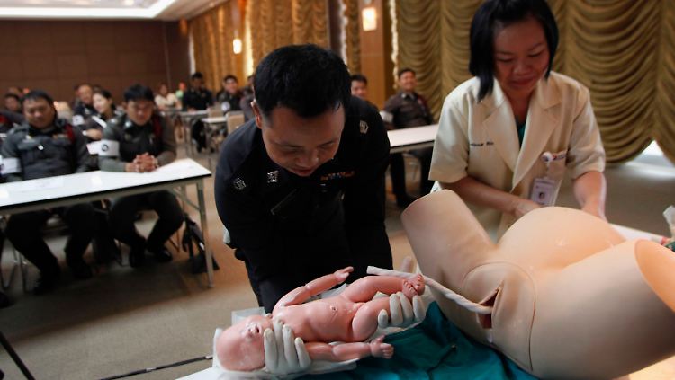 Geburtshelfer in Uniform Bangkoks Polizisten holen Babys