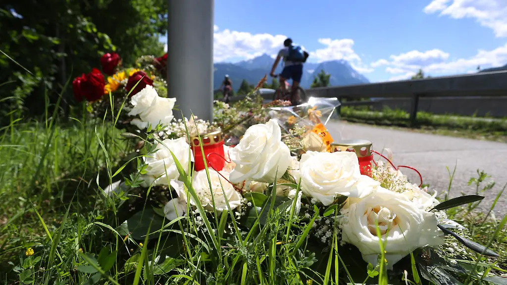 Bayernweit tragen staatliche Gebäude Trauerbeflaggung. Blumen mahnen an der Unfallstelle an das Unglück - wo noch immer die Lok und ein Waggon auf den Gleisen stehen, direkt neben der Bundesstraße nach Garmisch-Partenkirchen: ein unübersehbares Zeichen für die bei strahlendem Wetter wieder in Massen heranströmenden Ausflügler. Sichergestellt sind schon geborgene Fahrgestelle und völlig zertrümmerte Waggons sowie Teile von Schienen.