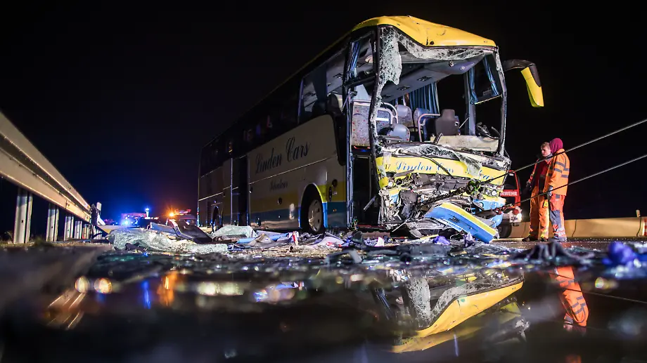 Wohin die Reisegruppe unterwegs war, konnte die Polizei zunächst nicht sagen. Der Bus war in der Nacht zum Samstag auf einen Lastwagen aufgefahren. Der mit Glas beladene Sattelzug war laut Polizei mit langsamer Geschwindigkeit auf der rechten Fahrspur der Autobahn 3 in Richtung Nürnberg unterwegs. Der Busfahrer soll laut Ermittlern die Situation zu spät erkannt haben.