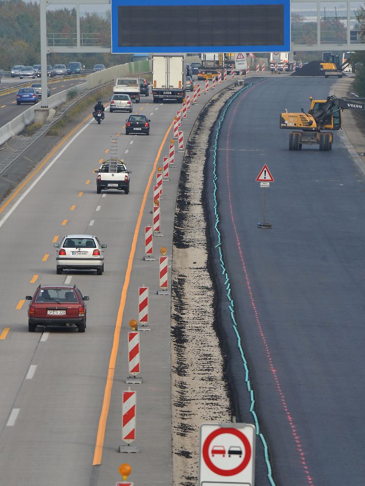 Die A 9 wird teilweise saniert und mit Bitumen überzogen, da die Betondecke der Straße Schäden aufweist.