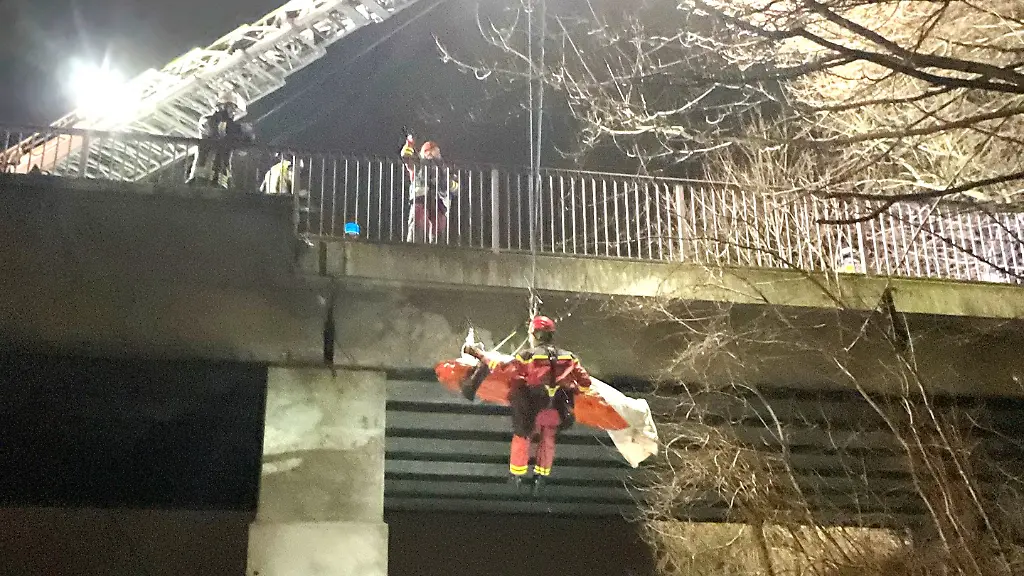 Die Rettung des Mannes gestaltete sich schwierig: "Der Transportweg zum Rettungswagen über den unbefestigten Abstieg von der Brücke zum Gleisbett erschien bei Dunkelheit für alle Beteiligten zu gefährlich", so der Feuerwehrsprecher weiter. Extra alarmierte Höhenretter hievten den Schwerverletzten deshalb mit Spezialausrüstung und Seilsystem zurück auf die Brücke. Er kam anschließend in eine Unfallklinik.