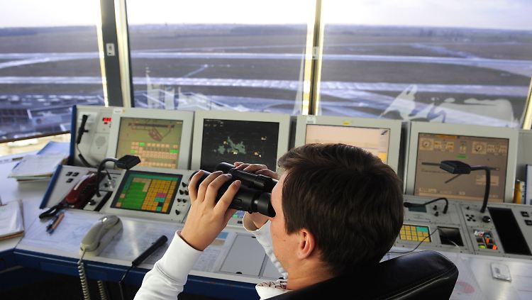 Blick auf den Monitor eines Lotsen auf dem Tower des Flughafens in Bremen.