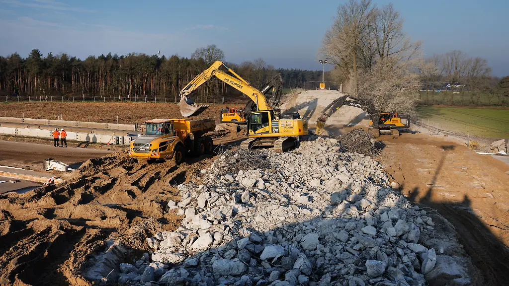 Schweres Gerät rückt anBrückenabriss sorgt für Sperrung der A1