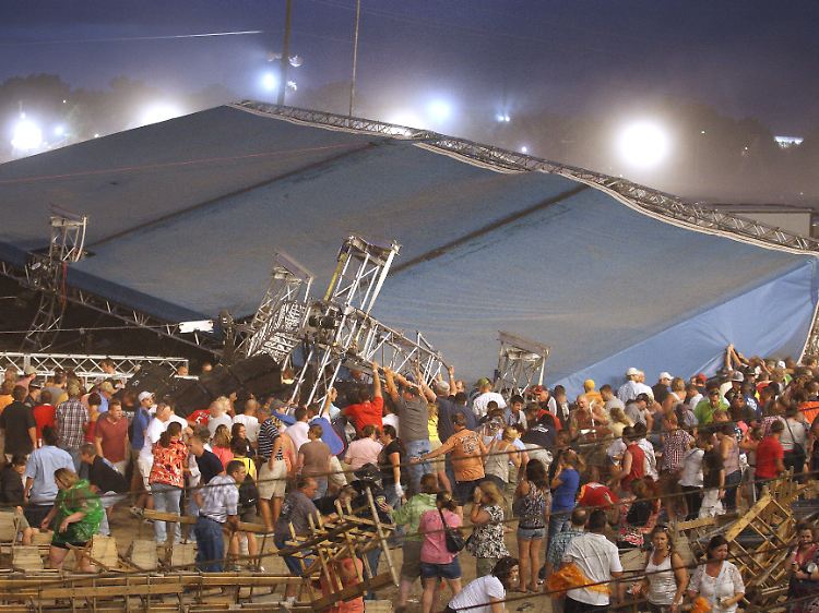 14.08.2011, 10:18 UhrVier Menschen sind beim Einsturz einer Bühne während eines Sturms in Indianapolis getötet worden. Wie die Zeitung "Indianapolis Star" unter Berufung auf neue Angaben der Polizei weiter berichtete, wurden 40 Menschen verletzt. Auf einem Video von dem Unglück war zu sehen, wie das Bühnengerüst von links nach rechts einknickte und auf die Zuschauer krachte. Das Unglück ereignete sich auf dem Festgelände der Indiana State Fair.