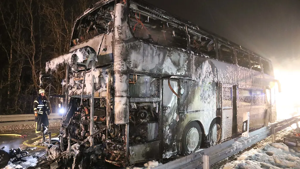 Mehrere VerletzteBus mit Schülern brennt auf Bundesstraße