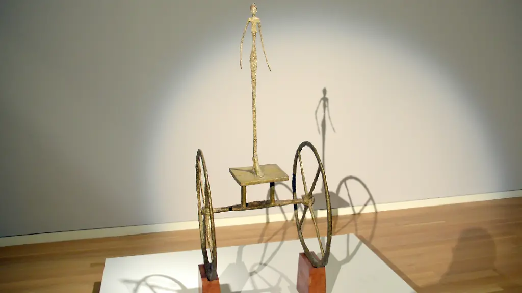 Giacometti, 1901 in Graubünden geboren, gehört zu den wichtigsten Künstlern des 20. Jahrhunderts. Seine Skulpturen zeichnen sich durch eine extrem dünne Linienführung aus. "Chariot" zeigt die Figurine einer Göttin, die auf einem langen Stab auf der Achse zweier Räder steht. Giacometti, er starb 1966 in Chur, hatte mehrere dieser "Streitwagen" gemacht, doch nur zwei sind Sotheby's zufolge in privater Hand.