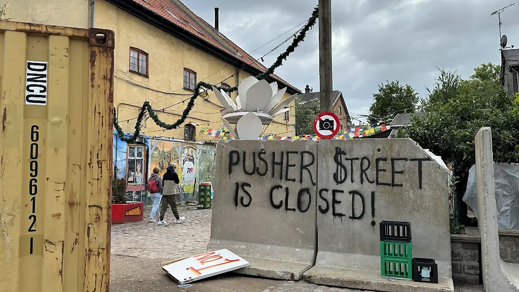 Besonders bekannt ist dabei die besagte Pusher Street, in der teils vermummte Männer an kleinen Buden Haschisch und Cannabis verkaufen. Diese Gasse verbarrikadierte eine größere Gruppe von Einwohnern nun unter anderem mit Betonabsperrungen und einem Container. "Die Pusher Street ist geschlossen", stand auf einem Betonklotz geschrieben. Einige der Blockaden waren am Vormittag aber bereits wieder zur Seite geschoben oder umgekippt worden, wodurch die Straße wieder zugänglich war.