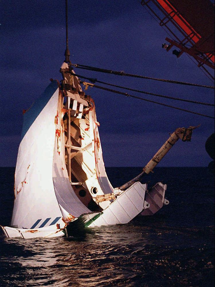 Durch das abgerissene Bugvisier drangen pro Welle 20 Tonnen Wasser in den Bauch des Schiffes ein.