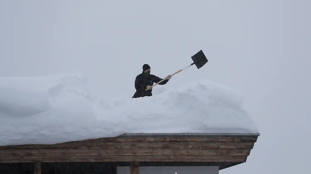 Wegen des starken Schneefalls in den Alpen sind Sicherheitskräfte sowie Helfer des Weltwirtschaftsforums (WEF) in Davos im Dauereinsatz. Polizisten und Soldaten schippten mit Schaufeln Schnee vom Dach des Kongresszentrums, wo an diesem Dienstag die WEF-Jahrestagung beginnt.
