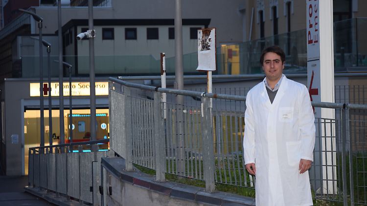 Es ist 6 Uhr abends, das Treffen mit Fabio Pirracchio, Assistenzarzt für Atemwegserkrankungen, findet vor der Notaufnahme des Mailänder Policlinico statt. Das Krankenhaus liegt im Zentrum der norditalienischen Stadt, gleich hinter der Universität und keine zehn Minuten vom Dom entfernt. Ständig kommen Rettungswagen an. Einer hat etwas größere Scheiben, durch die man Sanitäter mit Corona-Ausrüstung sieht. Die Szene dauert nur den Bruchteil einer Sekunde, trotzdem ist sie wie eine Faust im Magen. Mailand ist zu einem Covid-19-Brennpunkt geworden, allein hier wurden am Donnerstag 917 neue Infektionen festgestellt. Doch die erschütternde Dramatik der Situation spürt man erst, wenn man solche Szenen selber sieht.