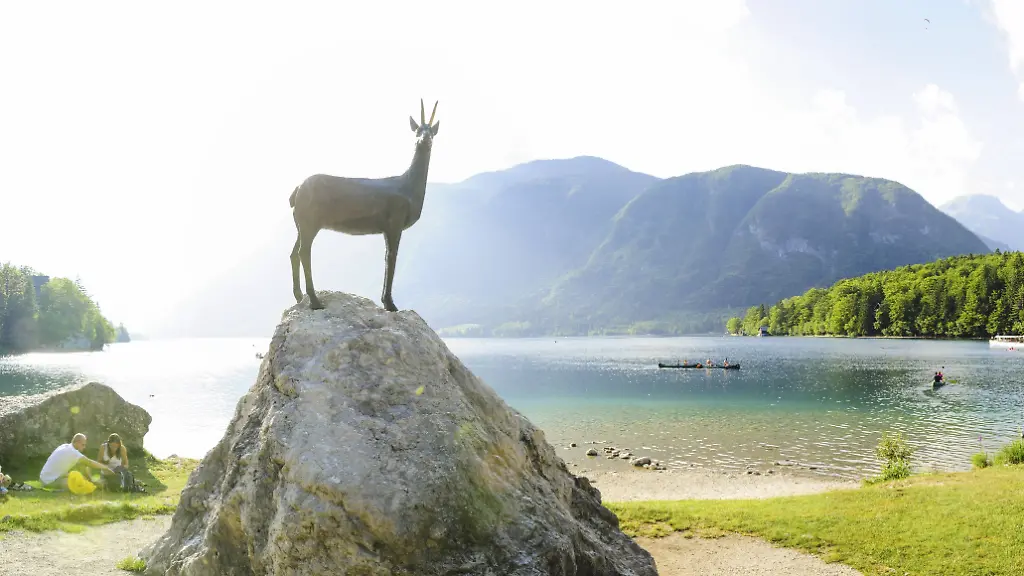 Durch Latschenkiefern geht es weiter, bald weitet sich das Tal. In einer Senke liegt der Große See, ein Fotomotiv für jeden Kalender. Bisher konnte man sich nicht verlaufen, aber am vorerst letzten See gabelt sich der Weg. Ein paar einheimische Wanderer erklären die schönste Route zum Gipfel. "Über die Dolic-Hütte", sagen sie einhellig. Ein guter Rat. Denn kurz darauf kreuzen hinter einem Felsblock zwei Steinböcke die Hörner, vielleicht 20 Meter entfernt, und über ihnen fläzen sich sieben andere. Wanderer scheinen sie nicht sonderlich zu stören. Wieder und wieder bäumen sich die Böcke auf ihren Hinterläufen auf und rasseln mit den Schädeln zusammen.