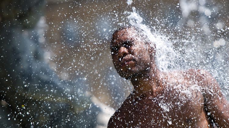 Es ist heiß, heißer, Sommer: Ventilator auf höchster Stufe, Köpfer ins Schwimmbecken und bloß keine Anstrengung - Deutschland ächzt unter der sengenden Hitze. Wetterkundler erwarteten das womöglich heißeste Wochenende des Jahres mit Temperaturen um 40 Grad. Auch Unwetter zogen heran. Im Westen ging am Mittag schon Gewitterregen nieder.
