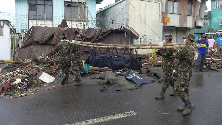 Es sind gespenstische Bilder. Die philippinische Stadt Tacloban gleicht einem Trümmerfeld, in der Luft hängt der Geruch verwesender Leichen. Die Angst vor Seuchen ist groß - genau wie die vor Plünderern, die nun auch Waffengeschäfte ausrauben.