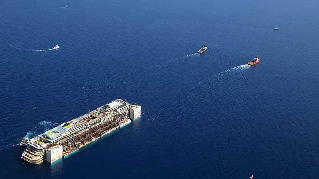 Seit Freitagmorgen fährt der Konvoi nicht mehr an der französischen Insel Korsika entlang und hat damit den gefährlichsten Abschnitt der insgesamt rund viertägigen Reise erreicht: Die Fahrt über das offene Meer. Hier könnten hohe Wellen dem stark beschädigten Wrack zusetzen. Vor der Insel Giglio wurde unterdessen die Suche nach dem letzten noch vermissten Opfer des Schiffsunglücks wieder aufgenommen. Taucher begannen damit, den Bereich im Meer abzusuchen, wo bis vor wenigen Tagen noch das 290 Meter lange Schiffswrack lag.