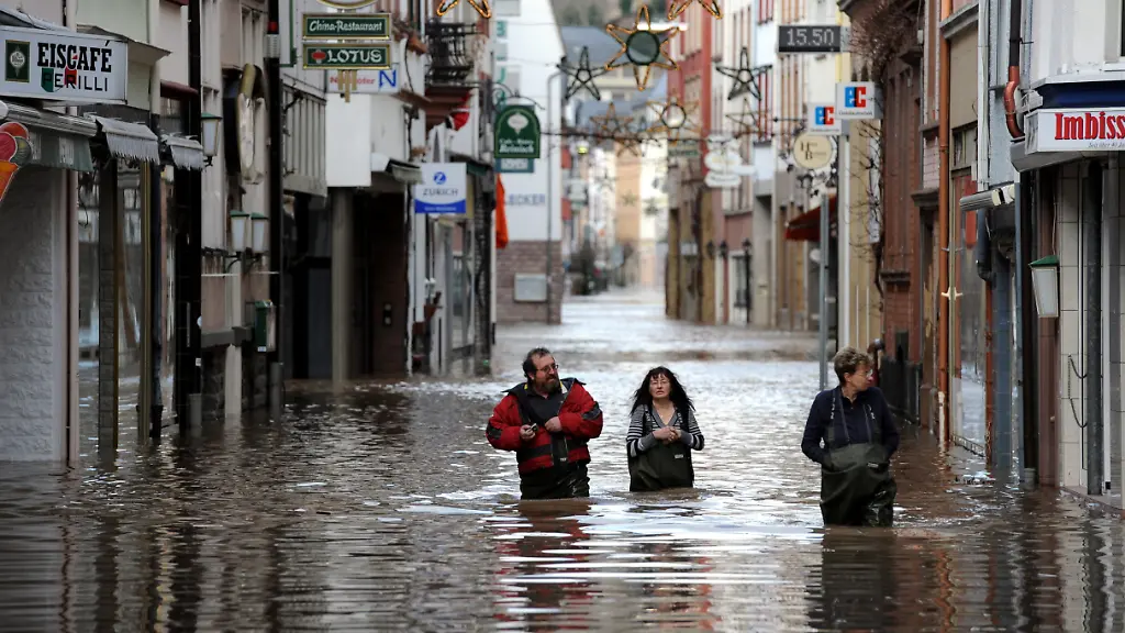 Regen und Schneeschmelze lassen immer mehr deutsche Flüsse über die Ufer schwappen. Einige Mosel-Orte waren bereits heftig überschwemmt, darunter die bekannten Weinstädte Cochem und Zell. "Die Stadt ist geflutet", sagte ein Polizeisprecher in Zell. Die Feuerwehr habe einen Bootsverkehr eingerichtet. Nach Einschätzung von Wehrleiter Markus Morsch standen etwa 60 Prozent der Altstadt unter Wasser, stellenweise bis zu einer Höhe von 1,80 Metern.