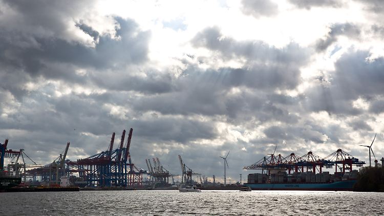 Wolken ziehen sich über dem Hamburger Containerhafen zusammen. Auch die kommende Woche bringt Wind und Regenwolken.
