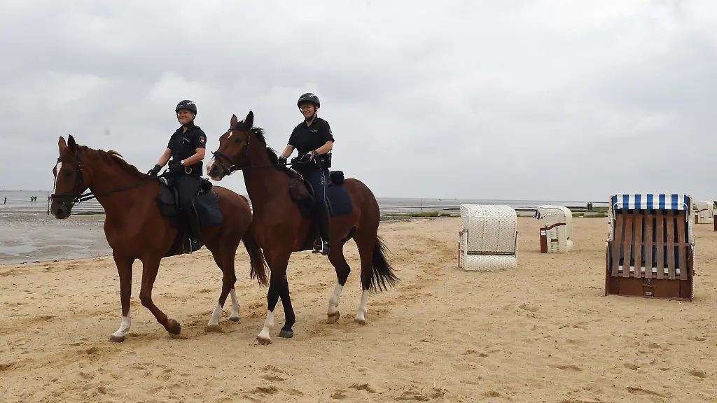 In Cuxhaven sind die beiden nicht die einzigen Strandpolizisten: Die Saisonverstärkung besteht aus einem Dutzend Beamten, sie sind zu Fuß, mit dem Rad oder dem Streifenwagen unterwegs. Auch in anderen Ferienregionen wird die Polizeipräsenz im Sommer erhöht, etwa auf Sylt oder Usedom. Die Beamten sollen nach Angaben des Innenministeriums in Mecklenburg-Vorpommern Badegästen als Ansprechpartner zur Verfügung stehen, Ruhestörungen und Diebstähle verhindern, Streit schlichten und bei Straftaten rasch eingreifen.