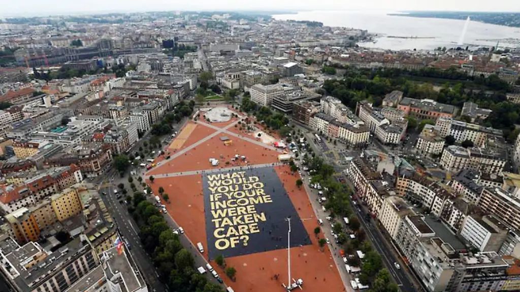 Der Schweizer Initiative, die die Volksabstimmung auf den Weg gebracht hat, gelang es in der Vergangenheit immer wieder, die Aufmerksamkeit der Öffentlichkeit auf sich zu ziehen. So kippten die Initiatoren im Oktober 2013, als die über 100.000 Unterschriften für die Volksabstimmung in Bern eingereicht wurden, acht Millionen echte Fünf-Rappen-Stücke auf den Bundesplatz. Zuletzt sorgten sie mit einem nach eigener Einschätzung "größenwahnsinnigen Weltrekordversuch" für Aufsehen: "Wenn die größte Frage der Welt kein eingetragener Weltrekord sein kann, dann werden wir sie auf das größte Plakat der Welt bringen", hatten die Initiatoren ihre Idee zuvor beworben. Die "größte Frage der Welt" lautet: "WHAT WOULD YOU DO IF YOUR INCOME WERE TAKEN CARE OF? (Was würdest du arbeiten, wenn für dein Einkommen gesorgt wäre?)"