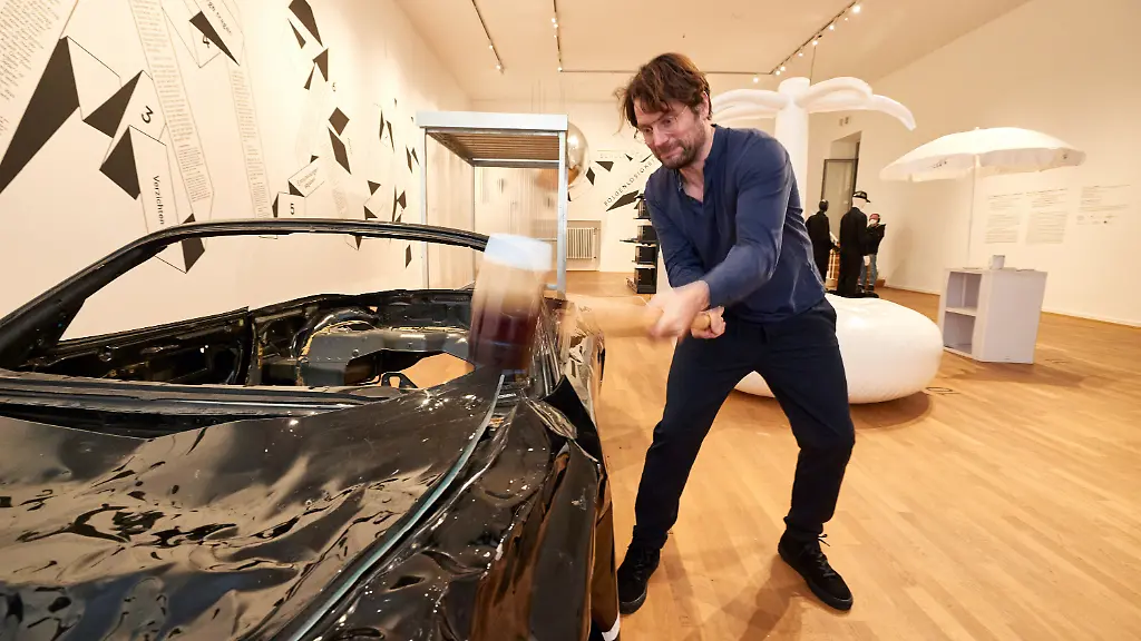 Die Ausstellung "Schule der Folgenlosigkeit. Übungen für ein anderes Leben" möchte die Besucher animieren, darüber nachzudenken, wer sie sind und was in ihrem Leben wichtig ist. Sie können ein Foto von sich machen, sich in Verzicht üben, Sorge tragen für die Folgen ihres Handels oder zerstören, was sie zerstört, indem sie symbolisch mit einem Hammer auf einen ausrangierten Porsche einschlagen.